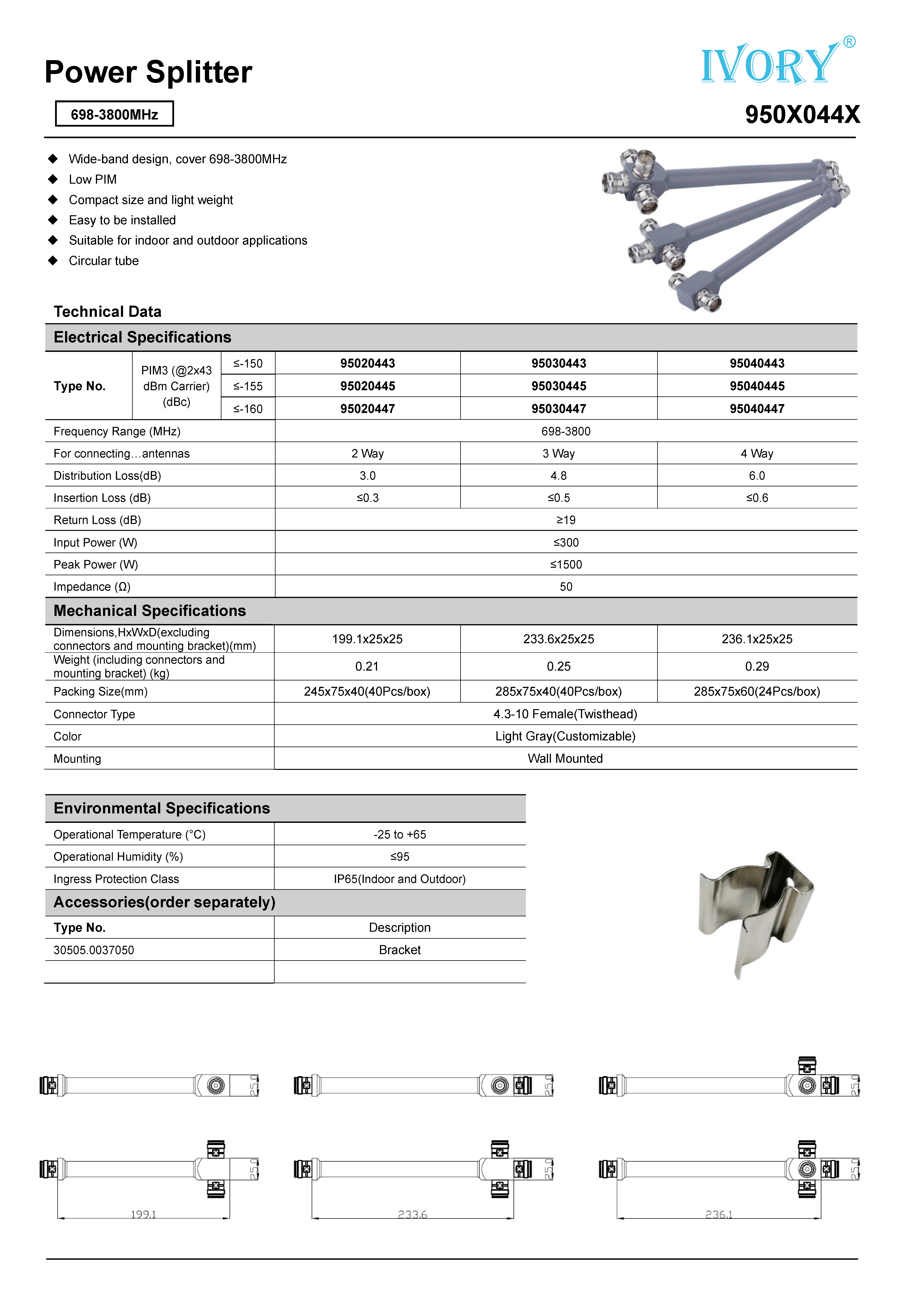| Dimensions,HxWxD(excluding connectors and mounting bracket)(mm) | 199.1x25x25 | 233.6x25x25 | 236.1x25x25 | ||||