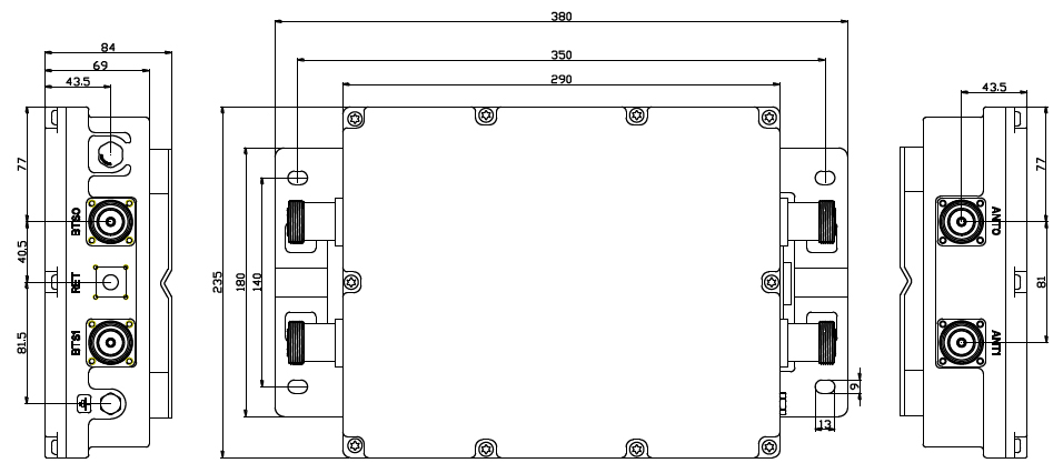 | Intermodulation products in RX band | <-117dBm (2 Tx carriers at +43 dBm) (Power up) @BTS IM3 |
