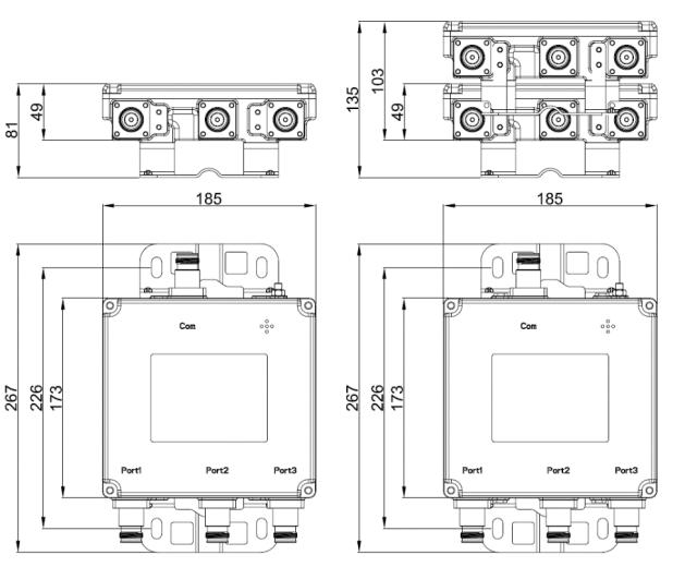 | Dimensions,HxWxD(excluding connectors and mounting bracket)(mm) | Single Unit:185x173x51 / Double Unit:185x173x105 | ||||