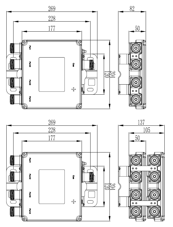 Single Unit:204x177x50 / Double Unit:204x177x105